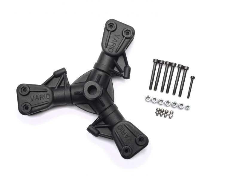 These rotor heads are manufactured using a special mixture of fiber glass reinforced plastic. They are moulded with the blade holder shafts integrated in one process. The resulting flexibility and damping from this process is the key to the good quality of these rotor systems.